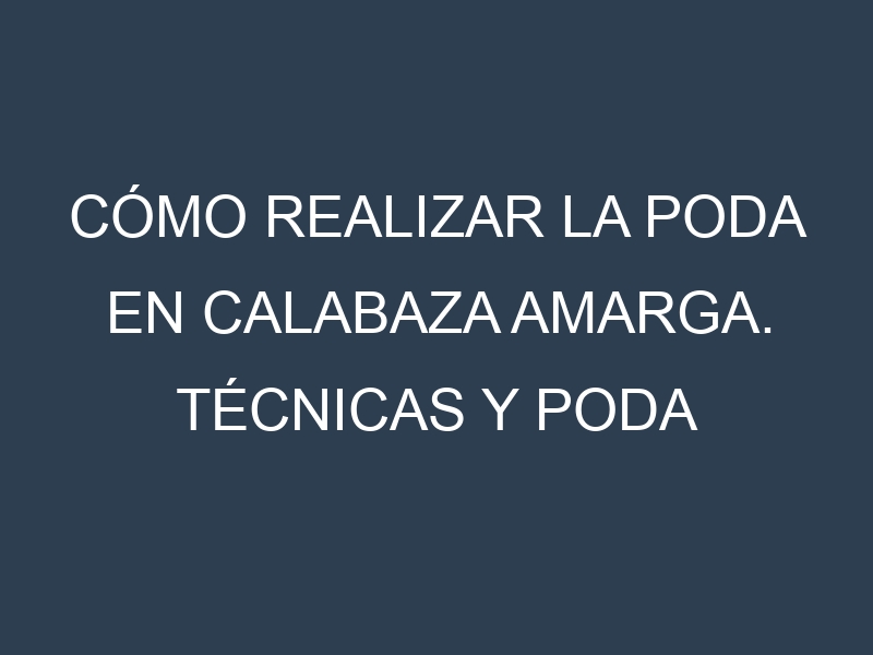 Cómo Realizar la Poda en Calabaza amarga. Técnicas y Poda de formación.